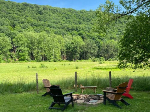 Continental Breakfast is served from 8:30-10AM in the Old Log Cabin. Lunch and Dinner are available for pickup in the Old Log Cabin at 12:00PM and 6:00PM. Guests are welcome to stay in the cabin to eat or take meals anywhere on-site!